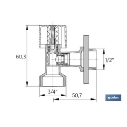 Válvula de Escuadra para Lavadora | Medidas: 1/2 x 3/4 | Fabricada en Latón CV617N | Cierre y Apertura 1/4 de Vuelta