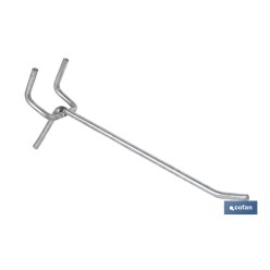 4. Set de 8 ganchos dobles | Adecuado para panel de herramientas perforado | Material: acero zincado