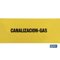 Cinta de balizamiento no adhesiva | Color amarillo con texto CANALIZACION GAS | Medida: 150 mm | Longitud: 250 metros | Galga 3
