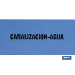 4. Cinta de balizamiento no adhesiva | Color azul | Texto: CANALIZACIÓN AGUA | Medida: 150 mm | Longitud: 250 metros | Galga 300