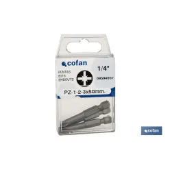 Kit de puntas de acero para atornillar | Contenido 3 puntas Pozi drive de 50 mm | Modelo 1/4 PZ