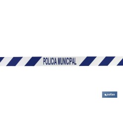 Cinta de balizamiento no adhesiva | Color: azul y blanco | Texto: POLICÍA MUNICIPAL | Medida: 80 mm x 100 m | Galga 300