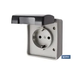 Base Enchufe con tapa IP44 | Para exteriores | 16 A - 250 V | Color gris