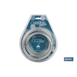 Flexo de Ducha | Fabricado en PVC | Color Plata | Racores de Latón | Longitud 1,5 | Rosca 1/2 Universal