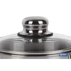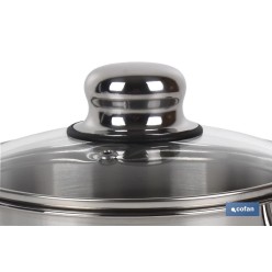 Cacerola de Acero Inoxidable Modelo polenta con tapa de vidrio y pomo inoxidable | Acabado brillante Resistente al oxido