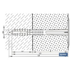 69,62 € -38% 43,17 €Diámetro de Taladro D: 10 mm | Longitud del Taco LD: 110 mm | Profundidad del Taladro LB: 120 mm | Profundidad Zona Expansión LV: 50 mm | Espesor a Fijar S: 60-70 mm | Piezas por Caja: 200 -