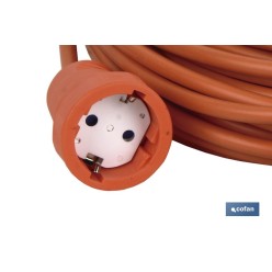 Prolongador de cable bipolar IP 44 | Con toma de tierra lateral | Cable de 10 y 25 metros color naranja