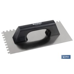 4. Llana dentada | Mango de plástico | Medidas: 300 x 150 x 0,7 mm | Fabricada en acero inoxidable
