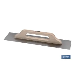 Llana extra larga para microcemento | Medidas: 500 x 120 x 0,4 mm | Fabricada en acero inoxidable | Mango de madera