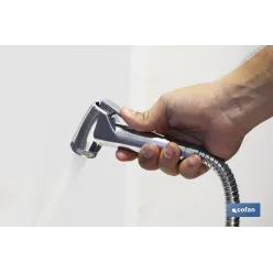 • KIT GRIFO DE DUCHA CROMADO CON PULSADOR+COLGADOR+FLEXO