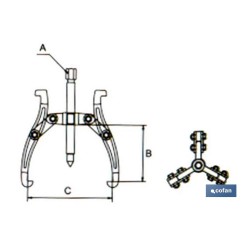 Extractor de 3 garras articuladas reversibles | Diámetro 3 a 12 | Apertura 15 - 80 mm a 50 - 317 mm