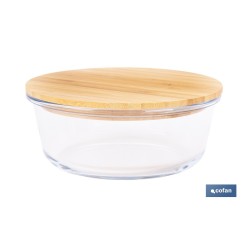 Set de 2 Fiambreras Redondas de Borosilicato | Modelo Bambú | Tapa de Bambú | Capacidad 620-950 ml