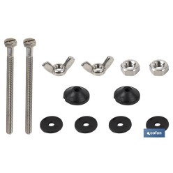 Conjunto de Tornillos | Fijación de Taza o Cisterna | M6 x 90 | Compuesto de 2 tornillos, Arandelas, Juntas y Palomillas