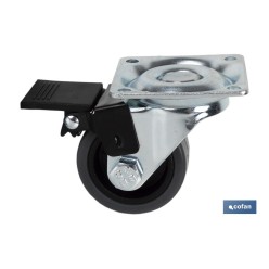 Rueda de goma gris con placa giratoria y freno | Diámetro: 40 mm | Hasta 32 kg de peso