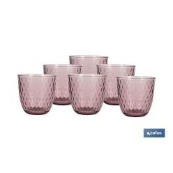 • PACK 6 VASOS DE AGUA VIDRIO 29 CL COLOR PURPURA CLARO MODELO ÓPALO