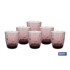 • PACK 6 VASOS DE AGUA VIDRIO 30,5 CL COLOR PURPURA MODELO JADE