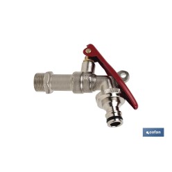 Grifo con maneta y toma para candado | Entrada de 1/2 y salida de 3/4 | Adecuado para manguera | PN: 25 bar