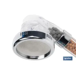 Mango de ducha iónico con esferas de minerales rojos | 3 funciones: lluvia, chorro y masaje | Acero inoxidable y ABS