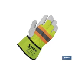 Guantes de piel vacuno con cinta reflectante | Tallas: 9, 10 y 11
