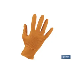 Caja de 100 guantes de nitrilo con textura diamantada | Tallas de la S a la XL | Color: Naranja