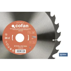 Hoja de sierra circular | Disco de corte para madera | Ideal para sierras circulares de mesa | 28 dientes | Medidas: 315 x 3,2