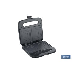 Sandwichera | Revestimiento antiadherente | Compartimentos para 2 sándwiches | Potencia: 750 W | Medidas: 23,7 x 23,3 x 9 cm