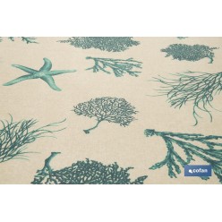 5. Rollo de mantel resinado con estampado digital | Diseño con elementos del mar | 50 % algodón y 50 % poliéster | Medidas: 1,40 x