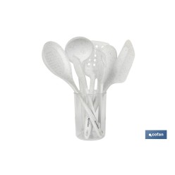 5. Set de 7 utensilios blancos para cocina de la gama Bach
