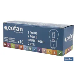• LÁMPARA COFAN 2 POLOS ROJA DESCENTRADA P21/5W (BAW15d) 12V