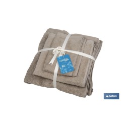 Juego de 3 toallas de color beige con 580 g/m2 | Gama Abisinia | Set de toallas 100 % de algodón