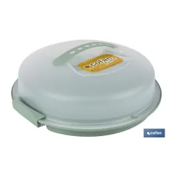 Tartera redonda en color verde | Incluye asa y tapa | Medidas: 34,5 x 11 cm