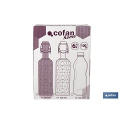 Botella de vidrio transparente con tapón de acero inoxidable | Capacidad: 1 litro