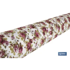 • ROLLO DE MANTEL ANTIMANCHAS RESINADO 50% ALGODON/50% POLIESTER. ROSAS 1,40 x 25 M