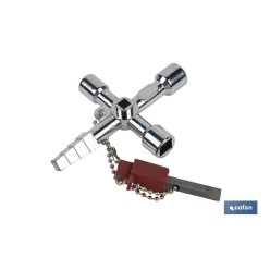 Llave de cabina multifuncional | Aleación de zinc cromada | Ideal para electrotécnica, fontanería | 10 perfiles | Longitud: 8,5