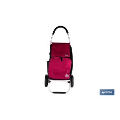 • CARRO DE LA COMPRA NEGRO Y GRANATE PLEGABLE DE ALUMINIO CON 2 RUEDAS GRANDES 43 L