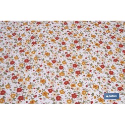 5. Mantel redondo antimanchas resinado con estampado de florecillas | Materiales: 50% algodón y 50% poliéster | Diámetro: 1,40 m