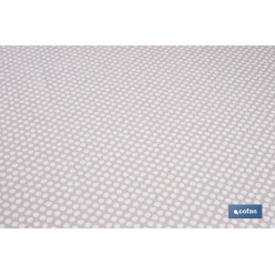 • MANTEL REDONDO TOPOS BLANCOS  ANTIMANCHAS RESINADO CONFECCIONADO 50% ALGODÓN 50% POLIESTER 1,40 M