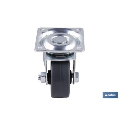 Rueda de goma gris con placa giratoria | Diámetros desde 30 mm hasta 40 mm | Para pesos desde 25 kg hasta 32 kg