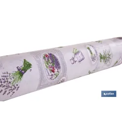 Rollo de hule con estampado de lavanda | Impermeable | Protección y estilo para la mesa