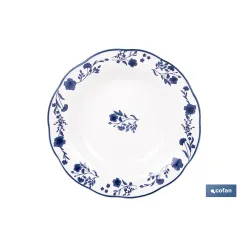 63,09 € -15% 53,62 €Unidades: 18 piezas: 6 platos llanos (Ø26,67 cm), 6 platos pequeños (Ø19 cm) y 6 platos hondos (Ø22 cm) | Comensales: 6 personas | Material: Porcelana | Diseño: Flores azules con fondo blanco