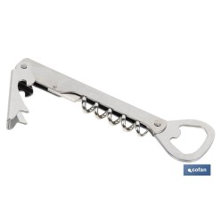 Sacacorchos con abridor | Material: Acero inoxidable | Adecuado para uso profesional | Diseño compacto y duradero | Longitud: 1