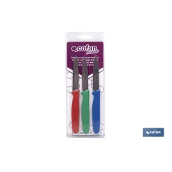 • PACK DE 3 CUCHILLOS PUNTILLA COLOR ROJO VERDE AZUL