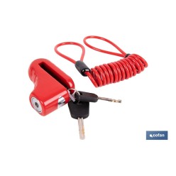 Candado de freno de disco | Cable rojo de 1 metro | Ideal para bicicleta, moto o patinete | Incluye 2 llaves tubulares | Cuerpo