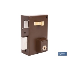 Cerradura de sobreponer de izquierda | Adaptable al modelo 56A | Cilindro de Ø25 mm | Incluye 3 llaves | Disponible en dos medi