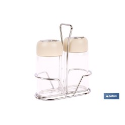 Set de salero y pimentero | Frascos de vidrio borosilicato | Soporte incluido | Tapas de color beige | Juego de 2 piezas | Capa