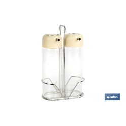 Set de aceitera y vinagrera | Frascos de vidrio borosilicato | Soporte incluido | Tapas de color beige | Juego de 2 piezas | Ca