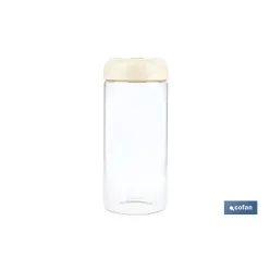 • BOTE DE VIDRIO BOROSILICATO CON TAPA BEIGE GAMA LAUREL 1300 ML