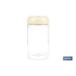 • BOTE DE VIDRIO BOROSILICATO CON TAPA BEIGE GAMA LAUREL 1000 ML