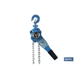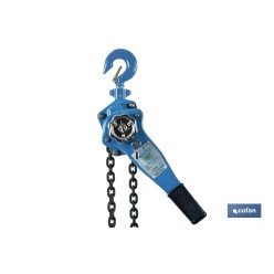 Polipasto manual de palanca | Altura de elevación: 1,5 m | Color: azul | Palanca ergonómica | Gancho resistente | Disponible en