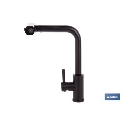 • GRIFO DE COCINA NEGRO DE ACERO CON MANGUERA EXTENSIBLE Y 3 FUNCIONES 340 X 240 X 54  MM